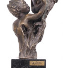 Pasta patinada simulando bronce sobre peana de mármol negro