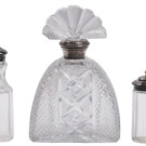 Lote compuesto por tres piezas en vidrio transparente y tapones en plata. Fns. S. XIX
