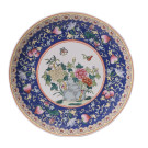 Reproducción de plato en porcelana esmaltada con decoración floral de peonias siguiendo modelos de la Dinastía Ching periodo Tung Chin de 1862 a 1875. China, S. XX