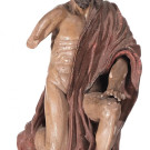 Madera tallada y policromada con ojos en pasta vítrea y tela encolada