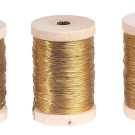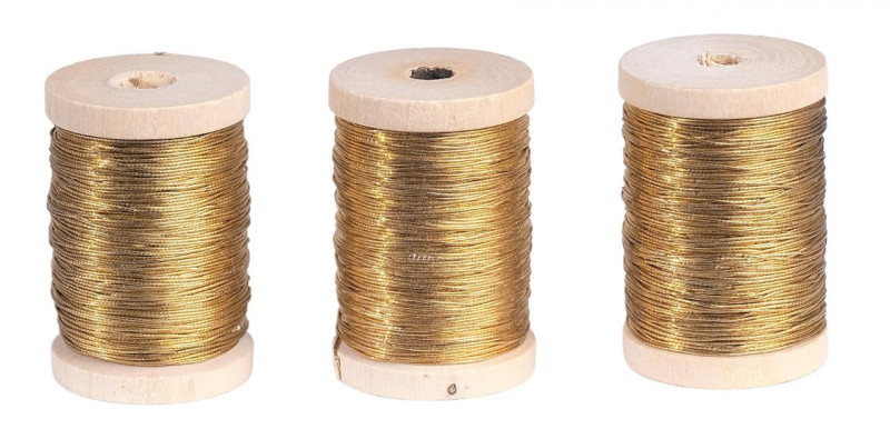 Lote compuesto por tres carretes de hilo entrefino dorado. Francia, 1920-1930