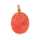Colgante neoclásico del Grand Tour con montura en oro amarillo de 18k con esfigie del emperador Adriano en coral . S. XVIII - S. XIX.