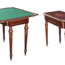 Mesa de juego Napoleón III en madera tallada y chapeada con marquetería de bouquets florales y guarniciones en bronce dorado. Francia, Fns. S. XIX