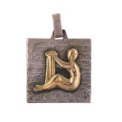 Colgante cuadrado en plata con figura en oro de 18k. Dimensiones: 25 x 25mm. Peso total de la pieza: 10,3g.