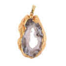 Colgante en metal dorado con lámina de geoda de cuarzo.