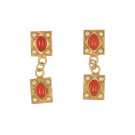 Pendientes largos en plata dorada con cornalina en talla cabujón y perlas cultivadas. Cierre de presión. Largo: 3cm.