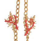 Collar con cadena de eslabones ornamentado con dijes de cuentas y ramas de coral del Mediterráneo en plata dorada. Largo 45cm.