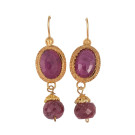Pendientes largos en plata dorada con rubíes tallados. Largo: 5,3cm.