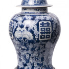 Jarrón con tapa en porcelana esmaltada con decoración de follaje, mariposas y caracteres caligráficos. China, S. XIX - XX
