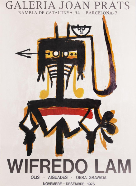 - JOAN MIRÓ (Barcelona, 1893 - Palma de Mallorca, 1983) Cartel litográfico Litografía 76 x 55 cm Cartel original de la exposición de Joan Miró en la Galería Maeght, 1978/79. Litografía sobre papel offset mate, tirada de 1000 ejemplares. Ref: "Joan Miró, les affiches originales", Editions Cercle d'art, n°108 - Maeght 1171. - EDUARDO CHILLIDA (San Sebastián, 1924 - 2002) Sans titre 1964 Litografía 62,5 x 48 cms. Cartel litográfico original de la exposición en la Galerie Maeght, 1964. - ANTONIO SAURA (Huesca, 1930 - Cuenca, 1998) La multitud, Sevilla Litografía 95 x 60 cm Impreso con motivo del Mundial de Fútbol celebrado en España en 1982. Sociedad de producción de carteles Maeght en colaboración con SMPI, West Nally y el comité Real organizador de España 82. - WIFREDO LAM (Sagua La Grande, Cuba, 1902 - París, 1982) Cartel litográfico Litografía 75 x 56 cm Cartel litográfico editado con motivo de la exposición de Wilfredo Lam en la Galería Joan Prats. Ed: La Polígrafa, Barcelona. 1976.