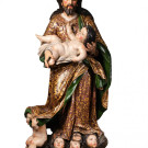 José era un hombre justo, un instrumento de la voluntad de Dios. Esposo de la Virgen María, y que tras la revelación del arcángel San Gabriel se encargará de cuidarla a ella y al Niño que espera. Dentro de la Sagrada Familia, durante siglos, José tuvo un lugar secundario en representaciones y devoción, pero llegará el siglo XVI y San José gana prestigio, se le considera un santo modélico, símbolo del padre de familia cristiano, fiel y discreto. Todo esto se engrandece durante los siglos venideros y se incentiva con la imaginería, más aún con la imaginería barroca de los siglos XVII y XVIII. En la escuela andaluza, San José tendrá grandes ejemplos y los mejores imagineros llegan a realizar efigies suyas para retablos privados, iglesias y conventos. Uno de estos artistas será el autor de la imagen de San José con el Niño Jesús, Benito de Hita y Castillo de Guzmán, «Hita del Castillo» (Sevilla,1714-1783) bautizado en la iglesia de San Martín. La historiografía clásica mueve las enseñanzas e influencias del imaginero entre Montes de Oca y Miguel Perera; también hay historiadores del arte que sostienen que la formación de Hita viene de la evolución de las formas de Duque Cornejo. Lo que queda constatado es que las obras de Hita del Castillo, tanto esculturas como retablos se mueven dentro de los cánones estilizados, delicados, expresivos y elegantes, suaves en sus formas y con movimientos en líneas curvas que le otorgan un estilo propio. En la composición de San José con el Niño reconocemos la concepción piramidal habitual en el imaginero, los angelitos como base de esta, con uno de ellos refugiándose bajo el manto, factura recurrente en numerosas tallas de Hita, que favorece el vuelo, el movimiento y la curvatura de los paños, marcan una diagonal hacia la cintura del santo, quien acuna al niño dulcemente sobre una toquilla blanca, y el pequeño levanta su mano derecha hacia el rostro de su padre, incidiendo así en el ascenso de las líneas hacia el ángulo de la pirámide. San José de expresión serena con nariz fina y marcada, tez morena, ceño relajado, cabellera de pelo largo, barba bífida, boca entreabierta con dientes y lengua insinuados, manos delicadas en su factura mientras acoge al Niño, de anatomía rolliza, como buen bebé de meses bien alimentado y sonrosado, en actitud tranquila y gesto de acariciar el rostro paterno. El primero con unas carnaciones más oscuras en comparación con las pálidas del Niño; aunque ambos lucen mejillas sonrosadas; al igual que los angelitos. Destacando el estofado de la túnica y manto del santo con decoración de motivos barrocos. No podemos dejar de referir otras obras de este artista dieciochesco como son: el San Juan Evangelista de la Hermandad de la Amargura, de la iglesia de San Juan de la Palma (Sevilla), collación a la que pertenecía el artista y donde se encuentra su cripta; el retablo de la capilla del Sagrario de la iglesia de Santa Catalina (Sevilla), presidido por una Inmaculada, y es en este retablo donde podemos encontrar un ejemplo de un ángel que se cobija bajo un cortinaje. Muchas de sus obras se encuentran distribuidas por Sevilla, Cádiz, Huelva o las islas Canarias con el Cristo de la Caída.