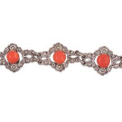 Brazalete en plata italiana con marquesitas y coral de Nápoles (h. 1930). Cabujones de 6mm. Largo total: 19,5cm. Peso total de la pieza: 18,39g.
