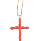 Cruz con corales de medio óvalo montada en plata dorada y cadena de plata dorada. Largo total: 40cm. Peso total de la pieza: 6,07g.
