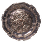 Plato en metal plateado con decoración repujada representando la obra titulada "El rapto de la hijas de Leucipo" realizada hacia 1618 por Peter Paul Rubens (Siegen, 1577 - Amberes, 1640). S. XX