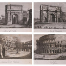Forman parte de las ilustraciones para el volumen: "Nueva colección de vistas antiguas y modernas de la ciudad de Roma". - Arco di Tito - Arco di Costantino - Interno del Coloseo - Colofseo