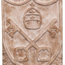 Escudo en piedra tallada con las llaves de San Pedro en bajorrelieve. S. XIX