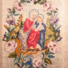 Bordado en "petit point" representando la Educación de la Virgen en una orla de flores y hojas. España, S. XIX