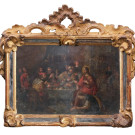 Presenta marco en madera tallada y dorada con decoración Rococó de rocalla y espejo del S. XVIII (desperfectos).