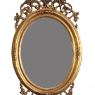 Espejo isabelino de forma oval con marco en madera moldurada, tallada y dorada con decoración floral y roleos de hojas de acanto. España, 2ª mitad del S. XIX