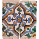 Pareja de azulejos por tabla en cerámica esmaltada de Triana en tonos azul, amarillo, verde y melado sobre fondo blanco realizado mediante la técnica de arista. Sevilla, S. XVI