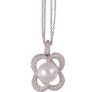 Colgante de brillantes de 2ct con perla australiana de 12mm de diámetro en cadena doble con. Largo total: 40cm. Peso total de las piezas: 15g.