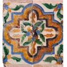 Pareja de azulejos por tabla en cerámica esmaltada de Triana en tonos azul, amarillo, verde y melado sobre fondo blanco realizado mediante la técnica de arista. Sevilla, S. XVI