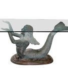 Mesa con sobre en vidrio transparente y pie en forma de sirena en bronce. S. XX