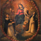 Virgen del Rosario con Santo Domingo de Guzmán y Santa Catalina de Siena en orla de flores