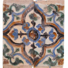 Pareja de azulejos por tabla en cerámica esmaltada de Triana en tonos azul, amarillo, verde y melado sobre fondo blanco realizado mediante la técnica de arista. Sevilla, S. XVI
