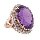 Anillo de topacio sintético oval rodeada de pequeñas puntas de brillantes engastados en metal dorado y plateado. Peso total de la pieza: 10g.