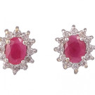 Pendientes en oro blanco con rubí central de 1,41ct engarzados en garra y orla de diamantes talla brillante de 0,40ct. Cierre omega. Peso total de las piezas: 6,16g.