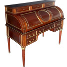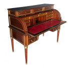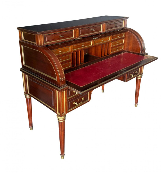 Bureau de cilindro de estilo Luis XVI en madera con decoración fileteada en bronce dorado. Francia, S. XX