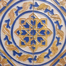 Pareja de azulejos en cerámica esmaltada de Triana en color azul y dorado sobre fondo blanco con reflejos metálicos realizados mediante la técnica de arista. Sevilla, Fns. S. XIX