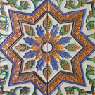 Pareja de azulejos en cerámica esmaltada de Pickman formando una estrella con decoración vegetal en color azul, verde y marrón sobre fondo blanco realizados mediante la técnica de la arista. Sevilla, Fns. S. XIX