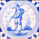 Azulejo en cerámica esmaltada de Triana de Manuel García Montalván en azul y blanco con decoración central de cazador. Sevilla, S. XX