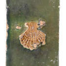 Azulejo por tabla en cerámica esmaltada de Triana con decoración central de concha en relieve sobre fondo verde. Sevilla, S. XVI