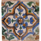 Pareja de azulejos por tabla en cerámica esmaltada de Triana en tonos azul, amarillo, verde y melado sobre fondo blanco realizado mediante la técnica de arista. Sevilla, S. XVI