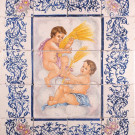 Panel compuesto por 17 azulejos en cerámica esmaltada representando a dos amorcillos con trigo como alegoría al verano. España, S. XIX