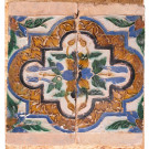 Pareja de azulejos por tabla en cerámica esmaltada de Triana en tonos azul, amarillo, verde y melado sobre fondo blanco realizado mediante la técnica de arista. Sevilla, S. XVI