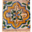 Pareja de azulejos por tabla en cerámica esmaltada de Triana en tonos azul, amarillo, verde y melado sobre fondo blanco realizado mediante la técnica de arista. Sevilla, S. XVI