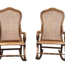 Pareja de mecedoras en madera tallada y torneada con asiento y respaldo de rejilla. S. XIX