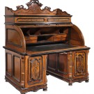 Bureau de cilindro en madera tallada y moldurada en su color con detalles ebonizados. Fns. S. XIX
