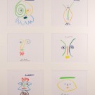 "El guerrero cansado", "Figura animal abstracta", "Hombre con barba", "El amante", "Retrato de Familia, IV" y "Rostro abstracto ovalado"