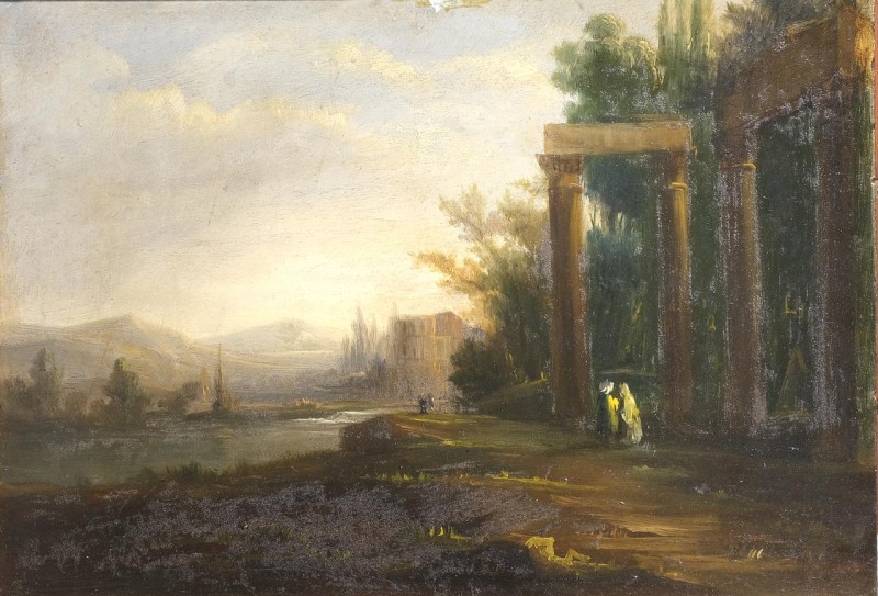 Pareja de paisajes con ruinas clásicas