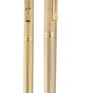 Juego de bolígrafo y pluma estilográfica Sheaffer Targa, probablemente de la línea "Slim", chapados en oro, el plumín de oro de 14k. El modelo Targa fue presentado por Sheaffer en 1976.