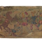Fragmento de carro en madera tallada y policromada representando una escena de batalla. Sicilia, S. XIX