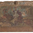 Fragmento de carro en madera tallada y policromada representando una escena de batalla. Sicilia, S. XIX