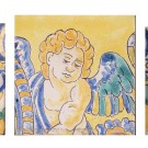 Lote compuesto por tres azulejos en cerámica esmaltada de Triana con decoración de ángeles. Sevilla, S. XIX - S. XX