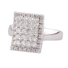 Anillo en oro blanco con forma rectangular cuajado de pave de diamantes talla brillante de 0,83ct. Peso total de la pieza: 4,95g