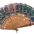 Abanico cantonés de las "Mil caras" con varillaje en madera tallada y calada con país de doble hoja en papel pintado a mano con escenas palaciegas y personajes. China, S. XIX
